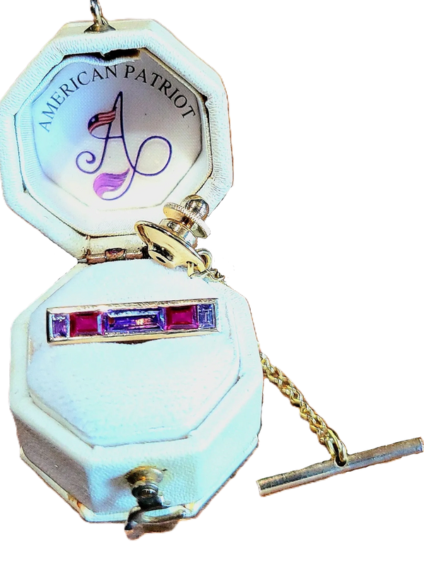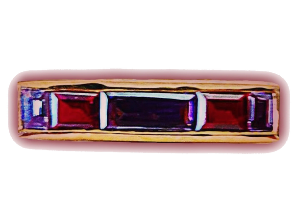 (width), crafted in 14-karat gold with an amethyst and ruby faceted tone stones set in a 14-karat gold casement.