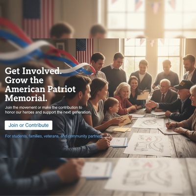 The American Patriot Memorial is a living effort to honor our nation’s heroes and strengthen the next generation. We’re inviting students, families, veterans, and community partners to step in early—so together, we can build a powerful culture of remembrance, service, and patriotism. Whether you give your time, your skills, or your financial support, you become part of the story we’re writing as a community.
